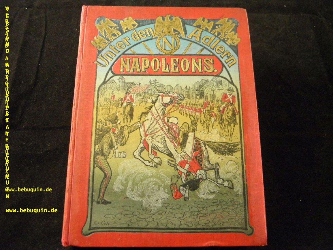 PEDERZANI-WEBER, J.: Unter den Adlern Napoleons. Eine geschichtliche Erzählung aus dem Jahre 1812. Berlin (Gahl), (1902). Gr. 8°. 196 S. mit 1 Portrait + 3 Farbtafeln von Peter Geh. ill. OLn. Vorsätze erneuert, Titelbild etwas stockflckig, sonst gut. EA. Klotz 5337/2.
