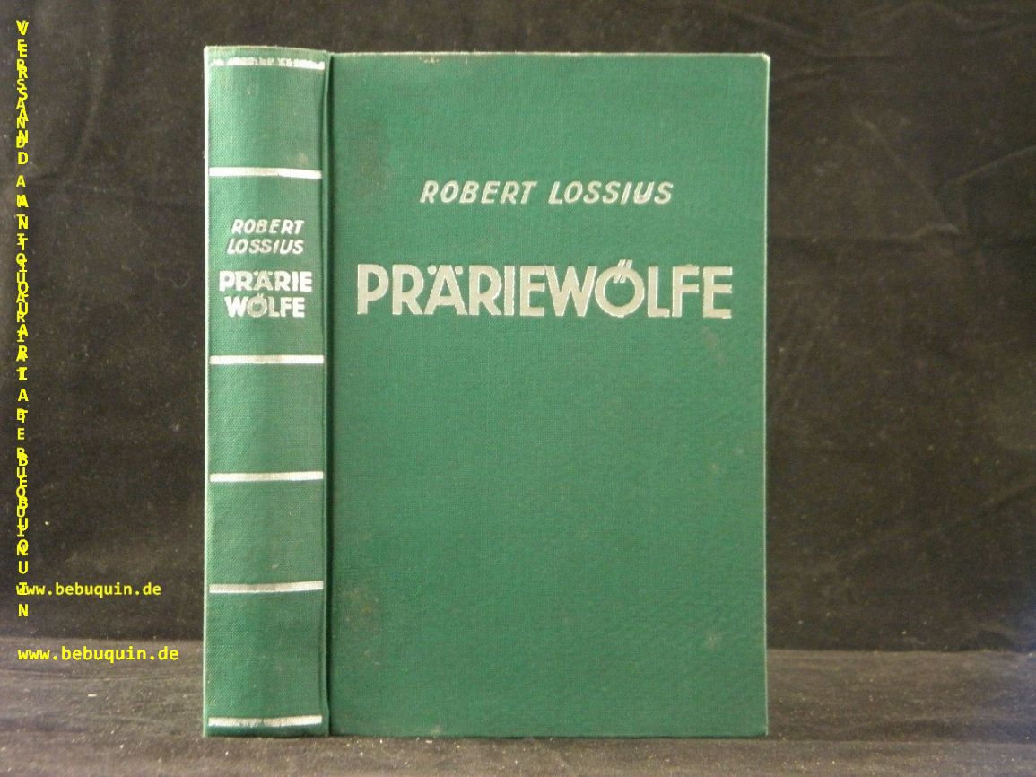 LOSSIUS, Robert: Präriewölfe. Abenteuer-Roman. Dresden (Münchmeyer), ca 1935. 283 (4) S. OLn mit Silberprägung. fliegender Vorsatz fehlt. = Münchmeyers Abenteuerromane. EA.