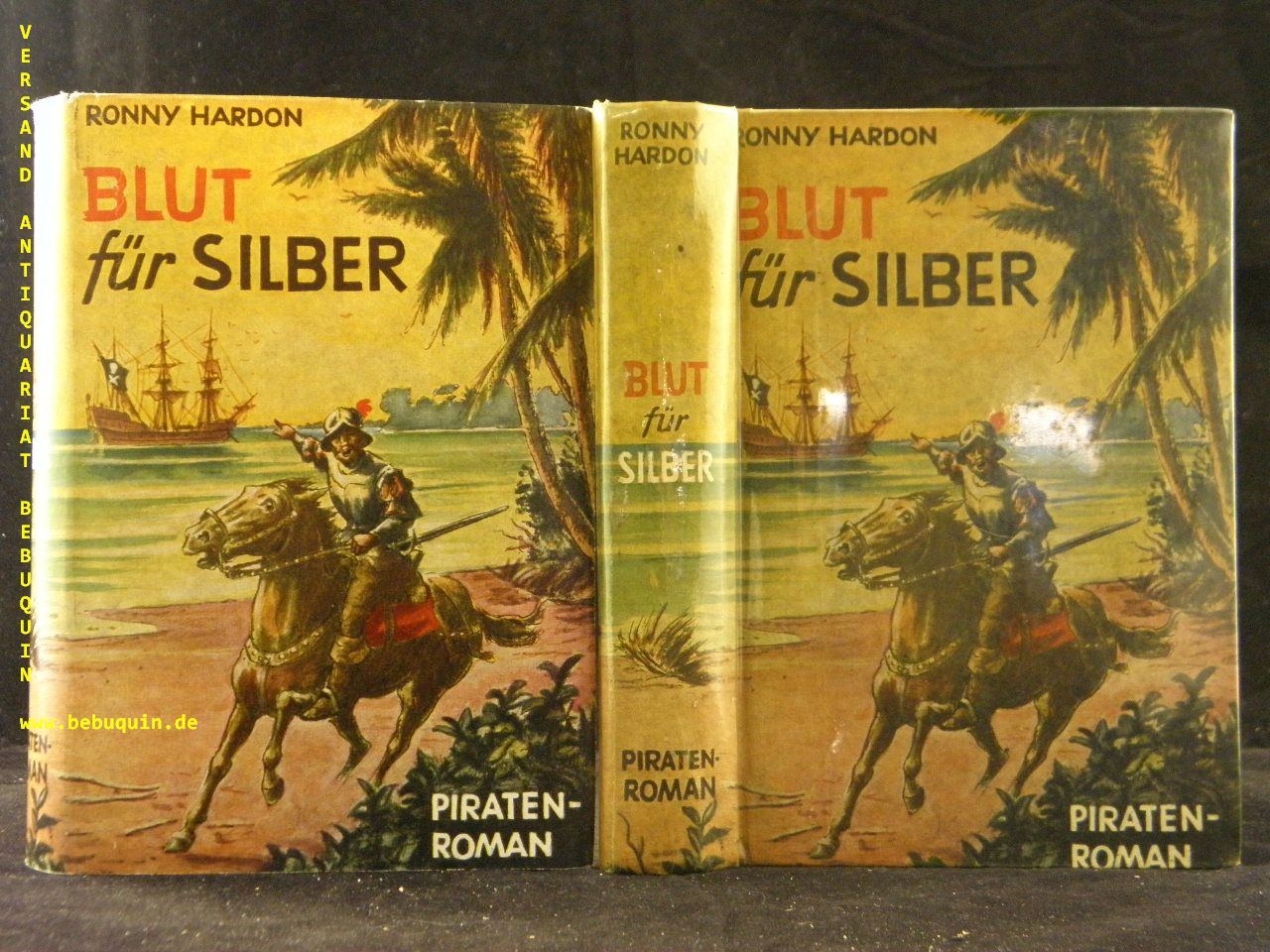 HARDON, Ronny: Blut für Silber. Piraten-Roman. Kaiserslautern (Skorpion), ca 1955. 256 S. farb. ill. OSupronyl mit OUmschl. gestempeltes Leihbuch. EA.