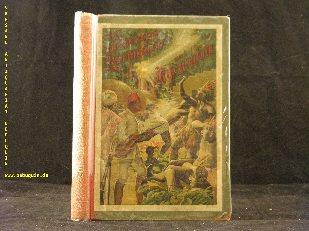 LÖNS.– ELM, Hugo: Auf afrikanischem Karawanen- und Kriegspfad Zwei Erzählungen für die reifere Jugend. Reutlingen (Bardtenschlager), (1891). 149 (3) S. mit 4 Farbendruckbildern. farb. ill. OHLn. kaum bestaubt. EA. Klotz1253/3. Mit einem eigenhändigen voll signierten Besitzervermerk sowie einem eigenhändig gemalten Ex libris des deutschen Heidedichters Hermann Löns. Museal!
