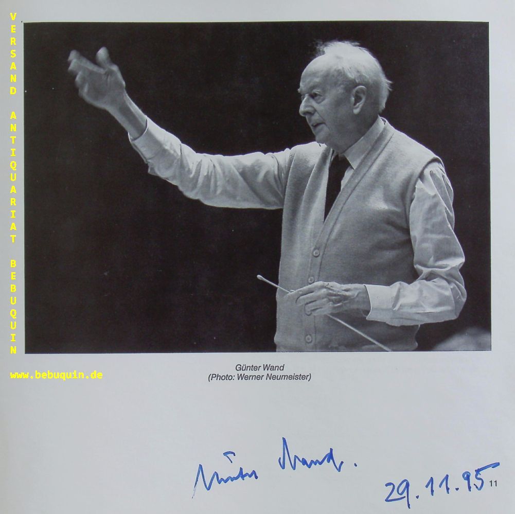 WAND, Günter (Dirigent): Programmheft mit eigenhändig signiertem und datiertem Foto von Werner Neumeister. München (Philharmonie), 29.11.1995 20 x 20 cm. 12 S. mit zahlr. Abb. OKart. tadellos = Münchner Philharmonie Günter Wand (* 7. Januar 1912 in Elberfeld, heute Stadtteil von Wuppertal; † 14. Februar 2002 in der Gemeinde Ulmiz, Kanton Freiburg Schweiz) war ein deutscher Dirigent. (Wikipedia)