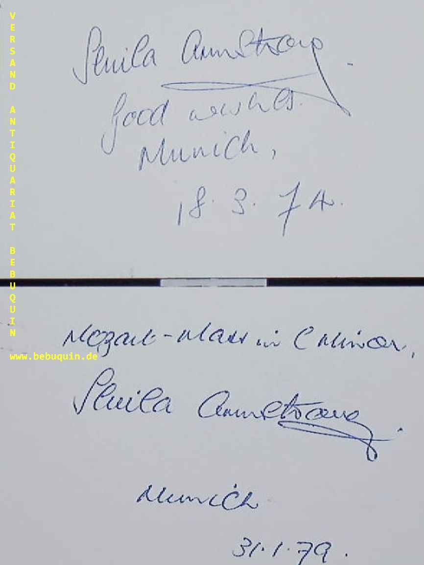 ARMSTRONG, Sheila (Sopran): 2 eigenhändig signierte und datierte Autogrammkarten. München (Herkulessaal), 1974 + 1979. 8 x 12,5 cm. 2 Karteikarten. Sheila Armstrong (* 13. August 1942 in Ashington) ist eine englische Opernsängerin (Sopran). (Wikipedia)