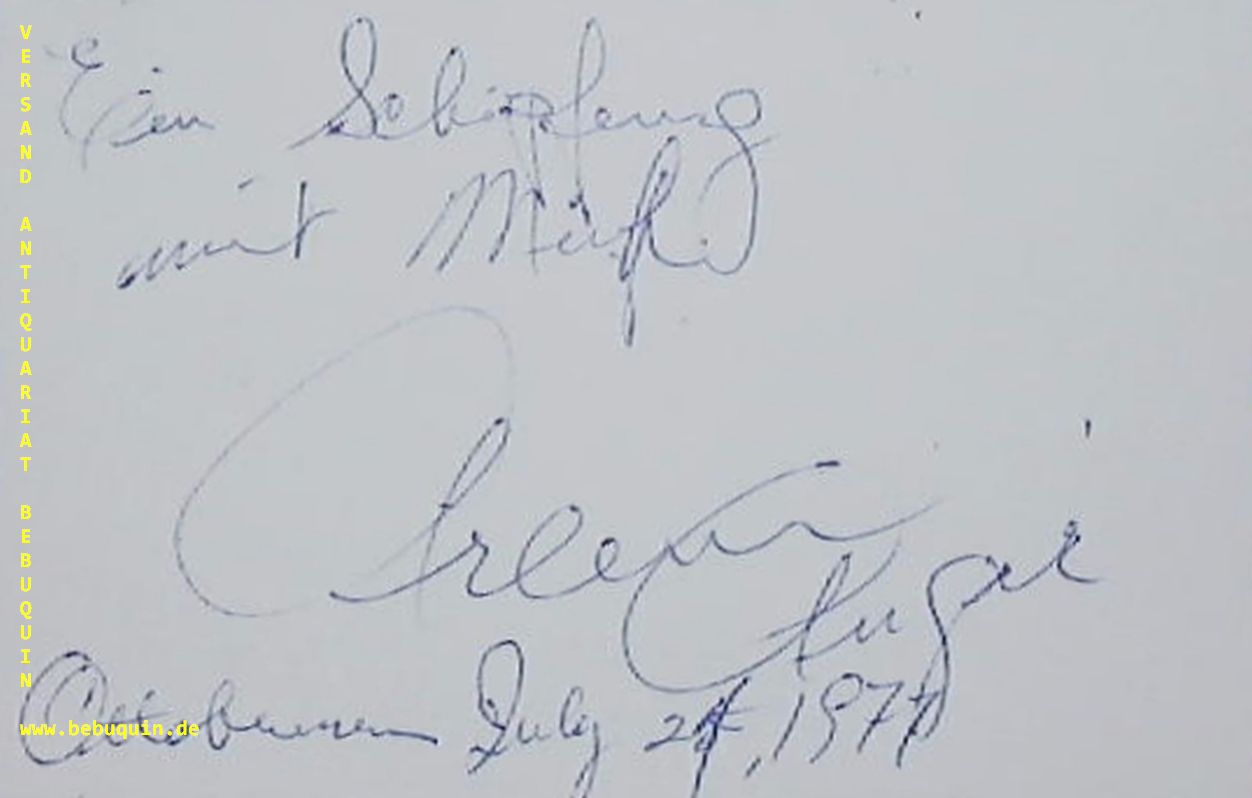 AUGER, Arleen (Sopran): eigenhändig signierte und datierte Autogrammkarte. Eigenhändig: Eine Schöpfung mit Müh. Ottobrunn, 24.7.1971. 8 x 10,5 cm. Karteikarte. Arleen Augér (* 13. September 1939 in South Gate, Kalifornien; † 10. Juni 1993 in Leusden, Niederlande) war eine US-amerikanische Opernsängerin (Sopran). Sie starb an einem bösartigen Gehirntumor (Glioblastom), der erst im Februar 1992 bei ihr diagnostiziert worden war. Am 30. Mai 1993 fiel die Sopranistin in ein Koma, aus dem sie bis zu ihrem Tod nicht mehr erwachte. (Wikipedia)