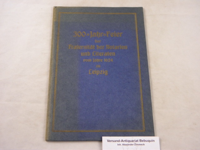 LEIPZIG.– 300-JAHR-FEIER DER FRATERNITÄT DER NOTARIEN UND LITERATEN VOM JAHRE 1624 ZU LEIPZIG.– Leipzig, 1924. Gr. 8°. 31 S. mit zahlr. Abb. und ausführlichem Mitgliederverzeichnis. OKart. leicht lichtrandig, sonst sehr gut erhalten.