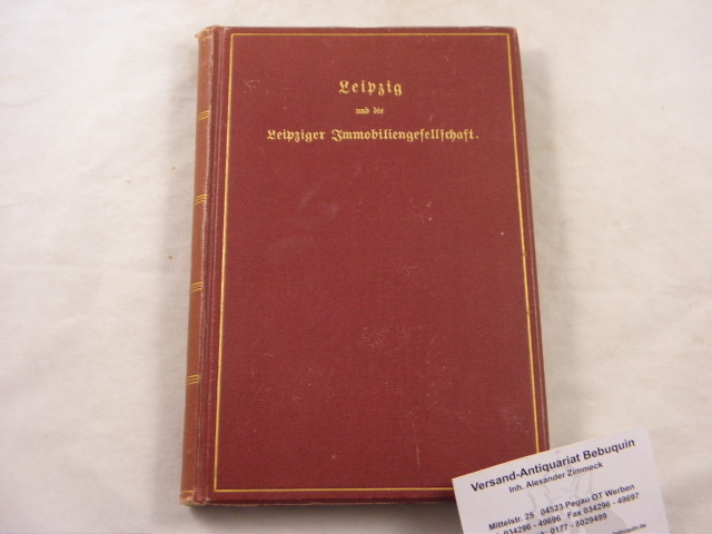 LEIPZIG.– WUSTMANN, Gustav: Leipzig und die Leipziger Immobiliengesellschaft. Ein Beitrag zur Geschichte der Stadt im letzten Drittel des neunzehnten Jahrhunderts. Leipzig, 1899. VI, 181 S. mit dreiseitigem Goldschnitt und den Rosenvorsätzen. OLn mit Goldprägung.