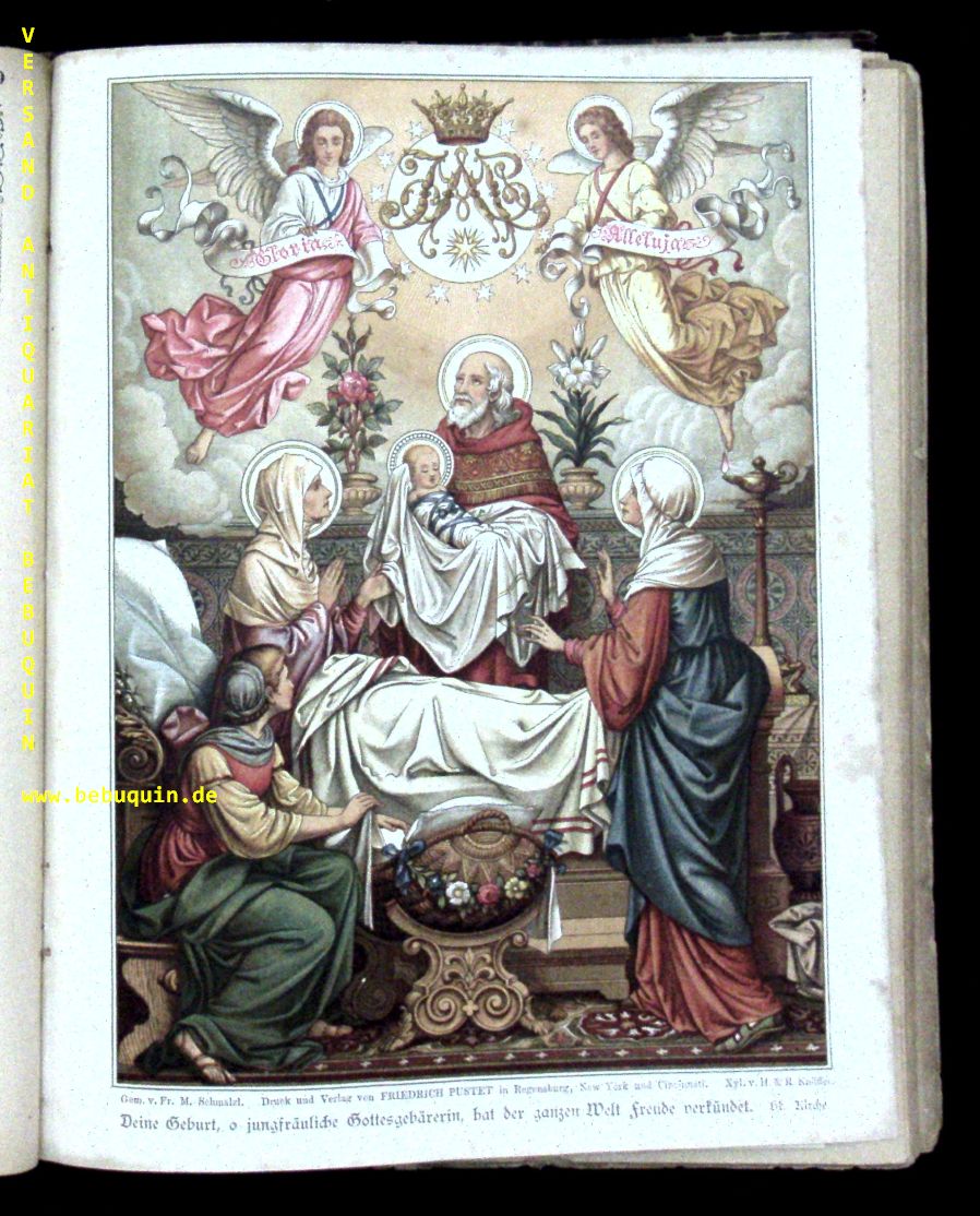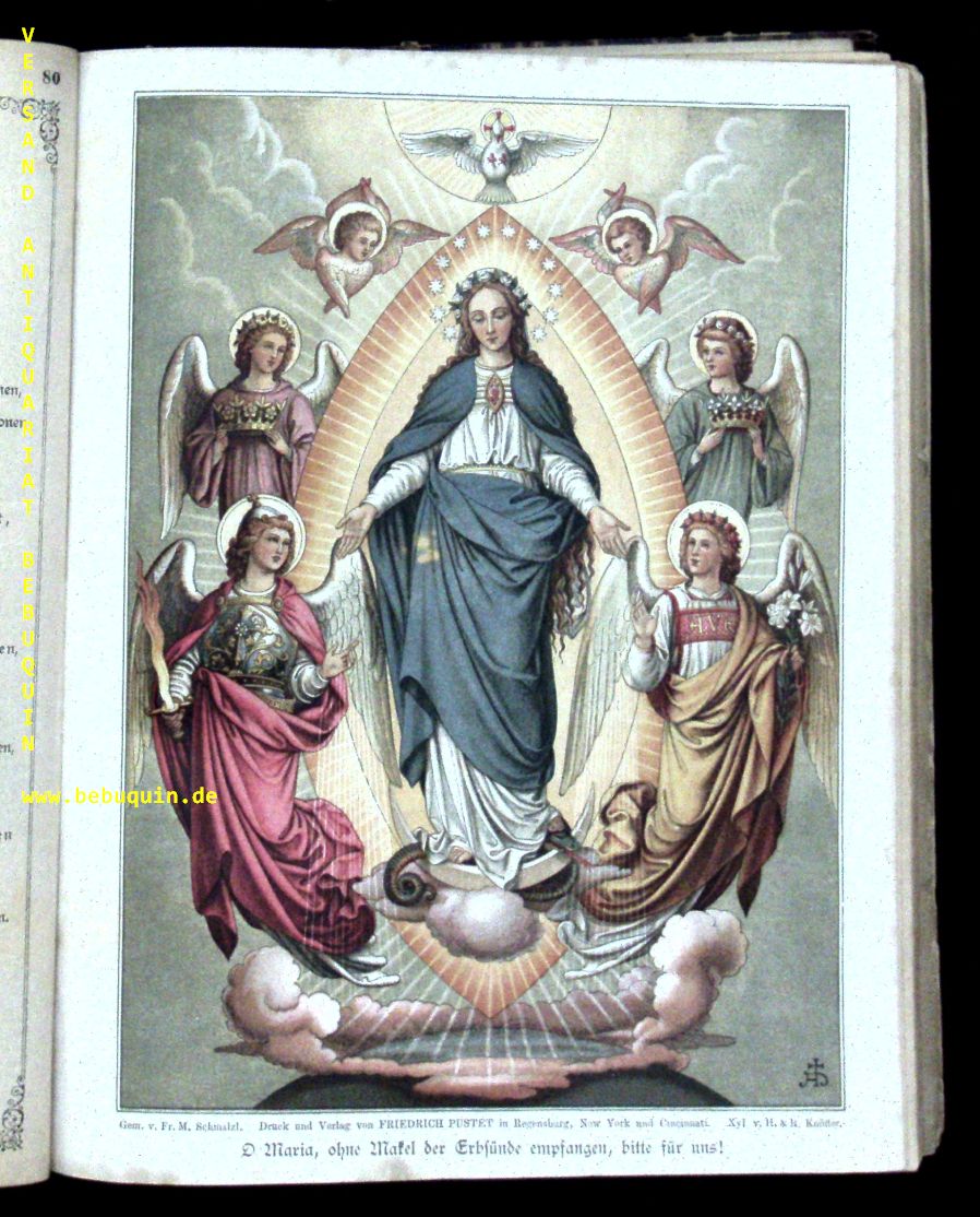 MAY, Karl: 4 Erstdrucke: Christus oder Muhammed. Sowie: Mater dolorosa. Der Verfluchte. Blutrache. In: Regensburger Marien-Kalender. 7 Bände in 1 Band. Regensburg (Pustet), 1889 – 1895. Gr. 8°. S. 54 – 192, 54 – 208, 54 – 208, 54 – 207, 54 – 207, 54 – 207, 54 – 207 mit zahlr. Holzstichabb. und teils aufklappbaren Bildtafeln sowie Chromolithos. HLn der Zeit. Rücken ca 7 cm angeplatzt, Buchblock gelockert, Seitenränder teils etwas bestoßen, die Kalenderteile sind nicht enthalten. Enthält vier Erstdrucke Karl Mays. WG² 214, 222, 233, 260. Von größter Seltenheit.