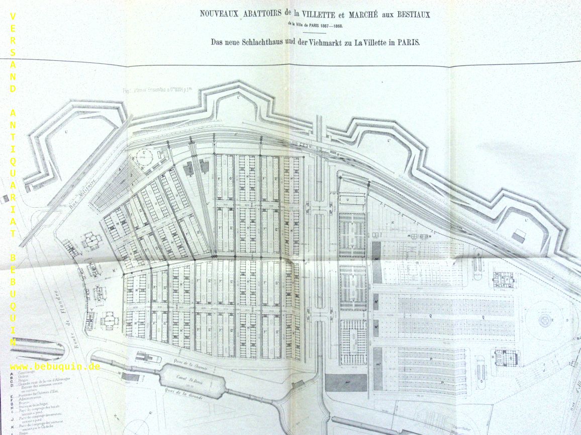 TIERMEDIZIN.– WENZEL, Franz: Die Einrichtungen der Viehmärkte und Schlachthäuser in den Hauptstädten Europa’s. Nach einer comissionellen Bereisung Wien (Zamarski), 1874. Gr.8°. 224 (3) S. + 14 faltbare Pläne der Schlachthöfe von Paris; Lyon; London; Berlin; Hamburg; Dresden; Pest; Turin; Mailand. Hldr der Zeit mit goldgeprägtem Rücken. StaT, gutes Ex. seltene EA.