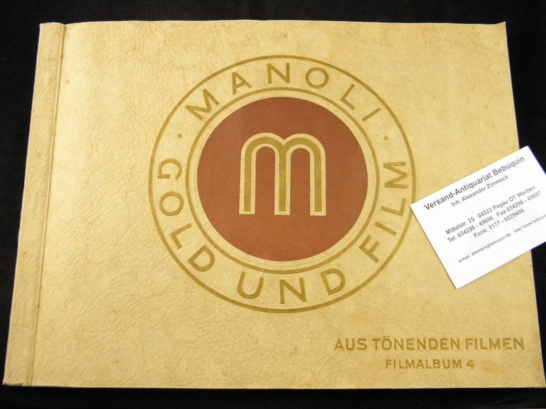 SAMMELBILDERALBEN.– MANOLI.– Gold und Film. Filmalbum 4. Aus tönenden Filmen. Bild 505 – 672. Berlin, 1933. Quer 4°. 28 S. mit 168 Sammelbildern. ill. OKart. gutes Ex. Köberich 21208.