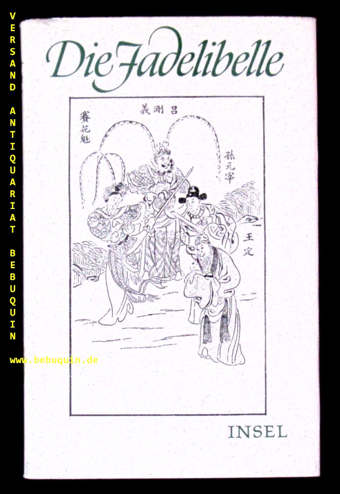 KUHN, Franz: (Übers.) Die Jagdlibelle. Leipzig (Insel), 1977. 190 S. mit 4 Holzschnitten. grünes OLdr mit OUmschl. feines Ex. 1. Aufl. der Lederausgabe.