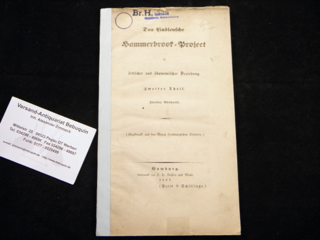 HAMBURG.– DAS LINDLEYSCHE HAMMERBROOK – PROJECT.– In örtlicher und ökonomischer Beziehung. 2. Theil. 2. Abschnitt. Hamburg (Nestler und Melle), 1847. 75 S. neuer Rücken. NaT. EA. (Abgedruckt aus den Neuen Hamburgischen Blättern.)