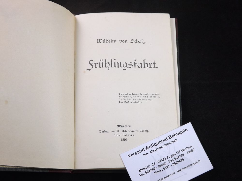 SCHOLZ , Wilhelm von: Frühlingsfahrt. München (Ackermann), 1896. kl. 8°. 102 S. HLn. der Zeit. EA des Erstlingswerks WG² 1.