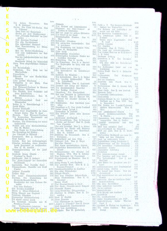 DIE GARTENLAUBE.– Illustriertes Familienblatt. Jahrgang 1910. Leipzig (Keil), 1910. 4°. VII, 1116 S. mit zahlr. Textabb. + vielen teils farb. teils doppelblattgroßen Bildtafeln HLdr der Zeit mit goldgeprägtem Rücken. eine Ecke mit Wasseerrand, vorderes Gelenk gelockert. = 58. Jg. Texte von Gustav Falke, Karl Rosner (Der Herr des Todes), Grabein sowie Bilder von Bahnhof Schoneberg, Autoomnibus aus der Biedermeierzeit, Otto Julius Bierbaum, Kaiserbrücke in Breslau, Insel Chios, neuer Elbtunnel, Kolotanz in Bosnien, Deutchlands erste Lokomotive, Panamakanal u.v.a.