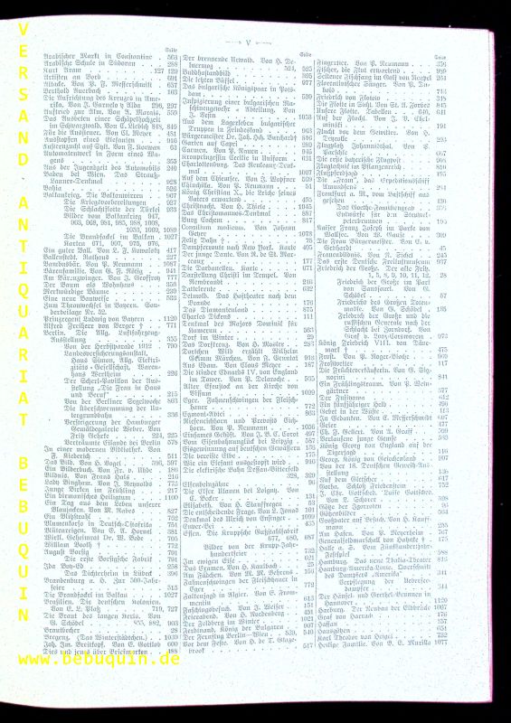 DIE GARTENLAUBE.– Illustriertes Familienblatt. Jahrgang 1912. Leipzig (Keil), 1912. 4°. VIII, 1120 S. + ca 400 S. Beilagen mit zahlr. Textabb. + vielen teils farb. teils doppelblattgroßen Bildtafeln HLdr der Zeit mit goldgeprägtem Rücken. tadellos. = 60. Jg. Mit Romanen von Achleitner, Ompteda, Stratz, Höcker, Paul Grabein u.a. Bilder von Algier, Kapitän Amundsen, Beatrix Antilope, Arabischer Markt in Constantin, Kurt Aram, Austernzucht auf Sylt, Balkankrieg, Allgemeine Luftfahrtausstellung in Berlin, Berliner Segelwoche, August Borsig, Brandenburg a.d. Havel,. bulgarisches Königspaar, Burg Cochem, Charles Dickens, Die elektrische Bahn in Dessau Bitterfeld, Gußstahlfabrik in Essen, Fasching, König Ferdinand, Fingertier, Die erste bayrische Flugpost, König Friedrich VIII., 18. Deutsche Geweih-Austellung, Halle, Elbbrücke in Hamburg, Hänsel und Gretel Brunnen in Hannover, Panzerkreuzer Moltke etc.