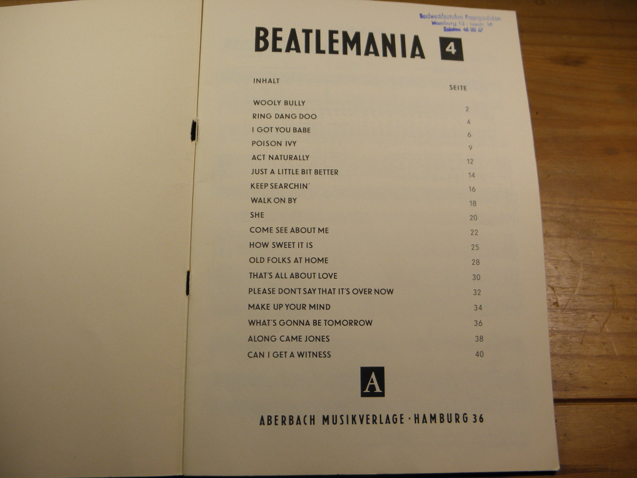 SONGBOOKS.– BEATLEMANIA 4.– Gesang und Klavier. Hamburg (Aberbach), 1967. 4°. 44 S. mit Noten. ill. OKart. gutes Ex. EA.