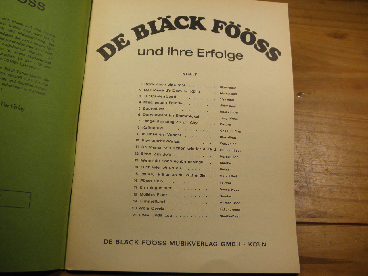 SONGBOOKS.– BLÄCK FÖÖSS: De Bläck Fööss und ihre Erfolge. Gesang und Klavier. Köln, 1978. 4°. 52 S. mit Noten. ill. OKart. gutes Ex. EA. Inhalt siehe Foto.