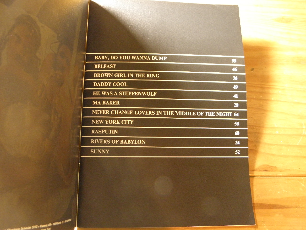 SONGBOOKS.– BONEY M.: Boney M. Gesang und Klavier. Berlin (hansa), 1978. 4°. 66 S. mit Noten und Bildern sowie dem Riesenfarbposter. ill. OKart. gutes Ex. EA. Inhalt siehe Foto.
