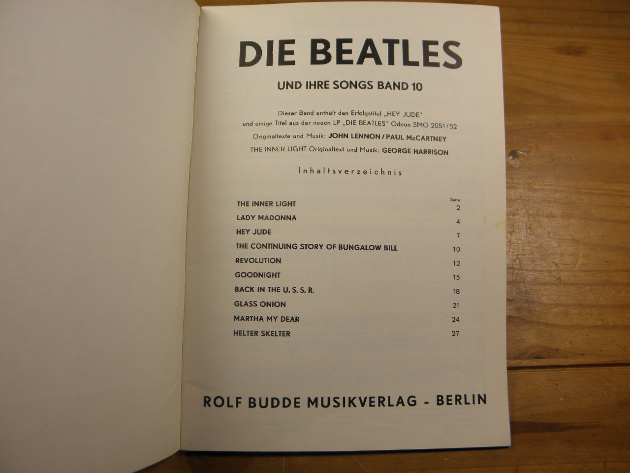 SONGBOOKS.– BEATLES: Und ihre Songs Band 10. Gesang und Klavier. Berlin (Budde), 1968. 4°. 31 S. mit Noten. ill. OKart. gutes Ex. EA. Inhalt siehe Foto.