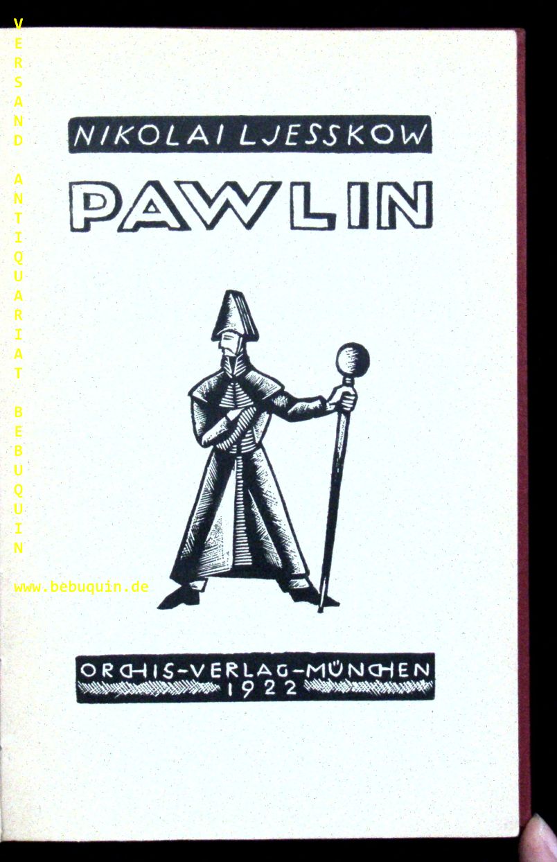 RÖSSING.– LJESSKOW, Nikolai: Pawlin. D.v. Johannes von Guenther. München (Orchs), 1922. Gr. 8°. 108 (3) S. mit 24 Original-Holzschnitten von Karl Rössing. ill. OLn. Rücken geblichen. = Der russische Mensch, Bd. 34. 1. Aufl. dieser Ausgabe.