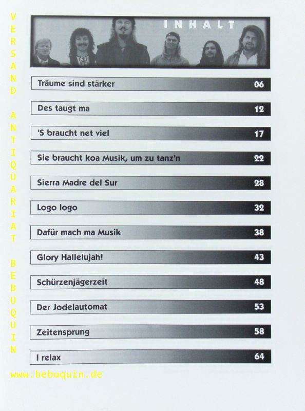 SONGBOOKS.– ZILLERTALER SCHÜRZENJÄGER: Das Beste. Bearb. von Wilhelm Binder. Für Voice, Piano und Gitarre. Pommelsbrunn (Hage), 1996. 4°. 68 S. mit Noten. farb. ill. OKart. gutes Ex. EA.