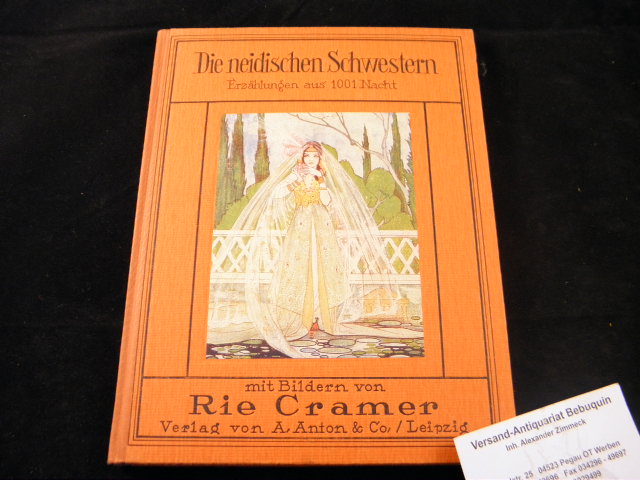 CRAMER, Rie: Die neidischen Schwestern und anderes. Leipzig (Anton & Co), ca 1935. 64 S. mit zahlr. Textabb. + mont. Farbtafeln. ill. OHLn. mit mont. Farbbild. feines Ex. = Erzählungen aus 1001 Nacht.