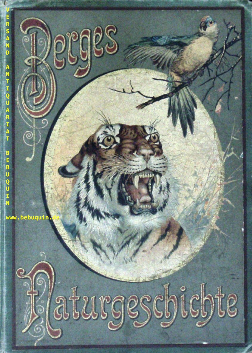NATURKUNDE.– BERGE, Friedrich: (Hrsg.) Illustrierte Naturgeschichte für die Jugend. Zur Selbstbelehrung und für den ersten Unterricht. 3. umgearb. Aufl. Stuttgart (Effenberger), 1897. X, 323 (2) S. mit 300 Abb. auf 16 Farbtafeln und 8 Ton-Tafeln sowie 200 Textabb. farb. ill. OLn. Gelenke gelockert, etwas fingerspurig.