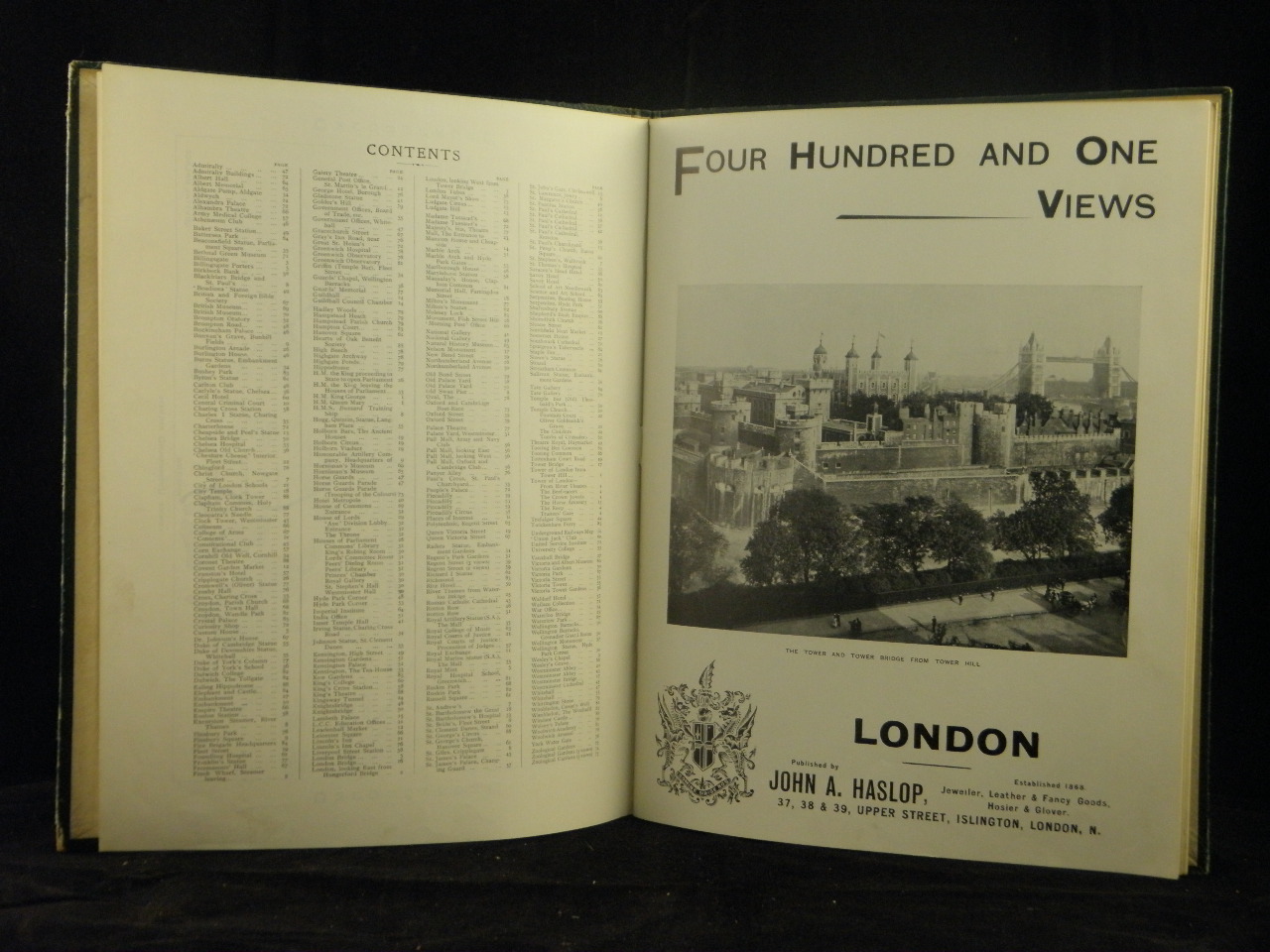 LONDON.– HASLOP, John A.: Four Hundred and One Views of London. London, ca 1910. 4°. 2 Bl. mit U-Bahn-Plan und Royal Titelbild + 88 Bildtafeln mit 410 fotografischesn Impressionen. OPb mit reicher Goldprägung. Kanten leicht berieben, schönes Ex. EA.