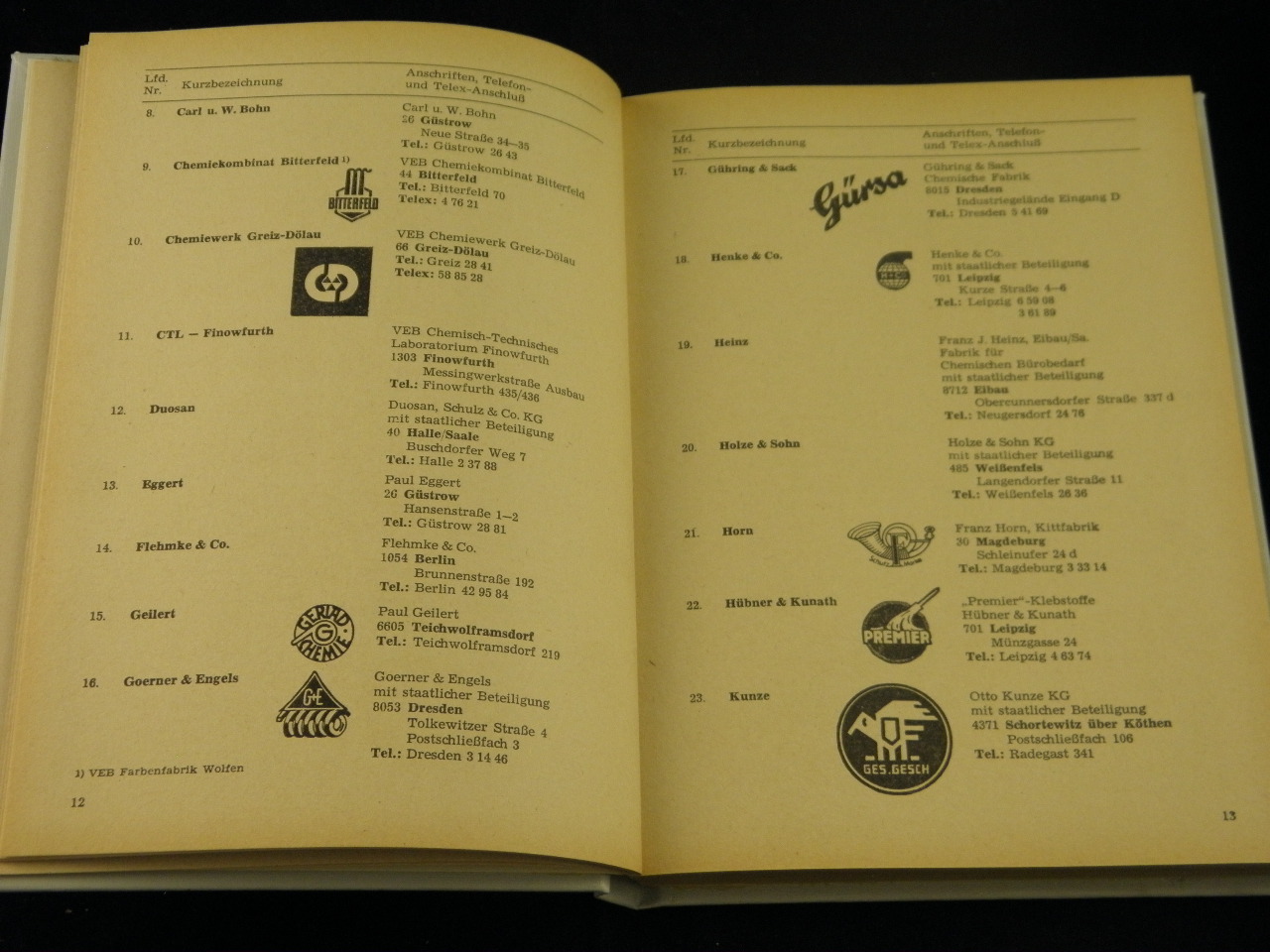 TECHNIK.– BARTHEL / DIMTER / RETTKOWSKI / RICHTER / WILD: Erzeugnis-Katalog der Erzeugnisgruppe Klebstoffe und Kitte. Prina (VEB Vereinigte Klebstoffe), 1970. 160 S. OLn. gutes Ex. EA.