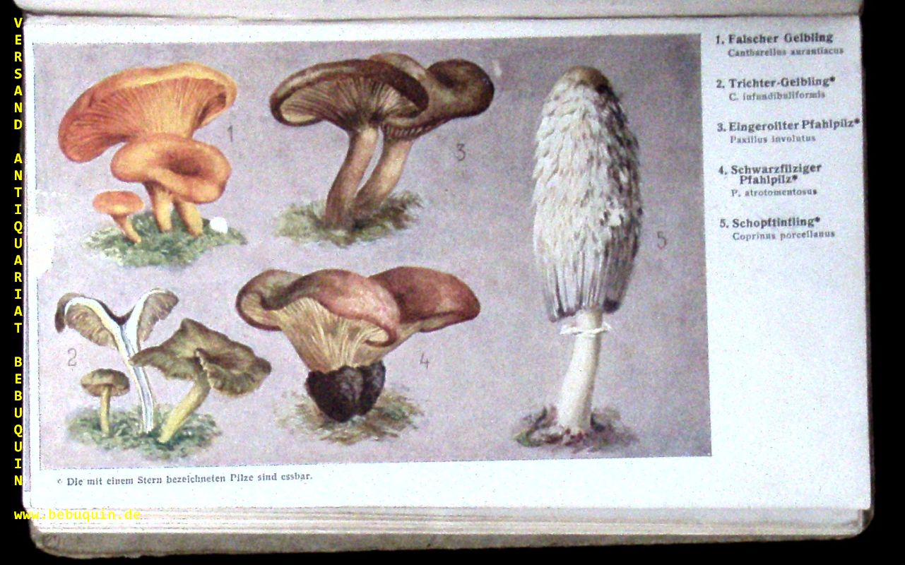 PILZE.– MACKÜ, Jan + KASPAR, Al: Praktischer Pilzsammler. Ill. Taschen-Bestimmungsbuch zum Bestimmen aller in unserer Heimat wachsenden eßbaren u. giftigen Pilze. Olmütz (Promberger), 1915. kl. 8°. 205 S. 48 Taf., mit 162 farb. u. 20 schwarzen Abb. auf 48 Taf. OPb. OHLn. Einband etwas angeschmutzt. EA.