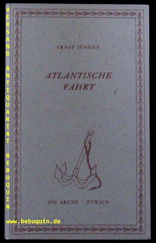 JÜNGER, Ernst: Atlantische Fahrt. Zürich (Arche), 1948. 100 (4) S. ill. OPb. tadellos. EA WG² 50 mit einer eigenhändigen voll signierten und datierten Widmung an Horst Mühleisen auf Vortitel.