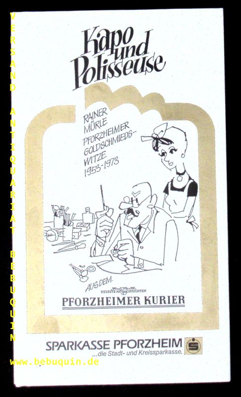 PFORZHEIM.– MÜRLE, Rainer: Kapo und Polisseuse. Pforzheimer Goldschmiedswitze 1953 – 1973 aus dem Pforzheimer Kurier. Karlsruhe (Badische Neueste Nachrichten), 1991. 119 S. mit zahlr. Ill. OPb mit OUmschl. Umschlag mit kleinem Einriss. EA.