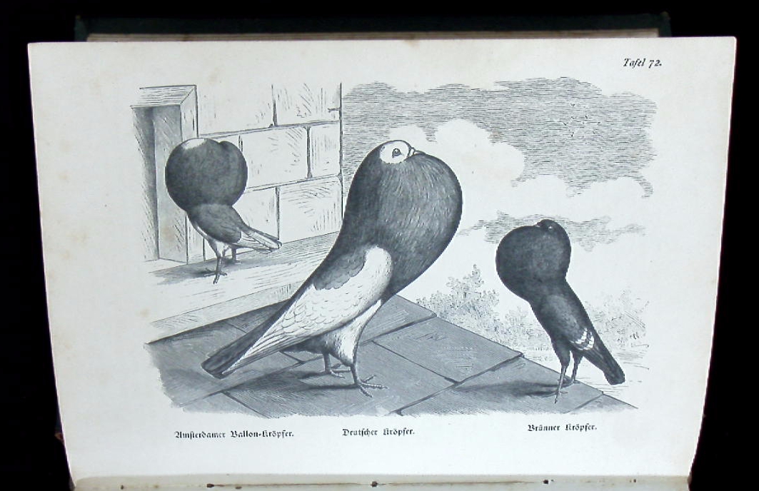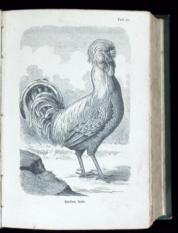 ORNITHOLOGIE.– DÜRIGEN, Bruno: Die Geflügelzucht nach ihrem jetzigen rationellen Standpunkt. Berlin (Parey), 1886. Gr. 8°. S. VI – XIII, 880 S. mit 80 Rassetafeln in Holzschnitt von Hugo Schindler und 101 Textholzstichen. ill. OHLdr. Kanten leicht berieben, Schnitt und Titelei stockfleckig, sonst hin und wieder fingerspurig, Block etwas gelockert, insgesamt noch gut. seltene EA des wichtigen Standardwerks mit den eindrucksvollen Tafeln.