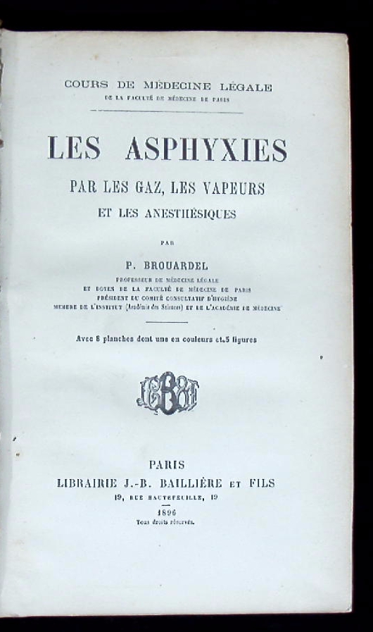 BROUARDEL, Les asphyxies par les gaz, les vapeurs et les anesthésiques.