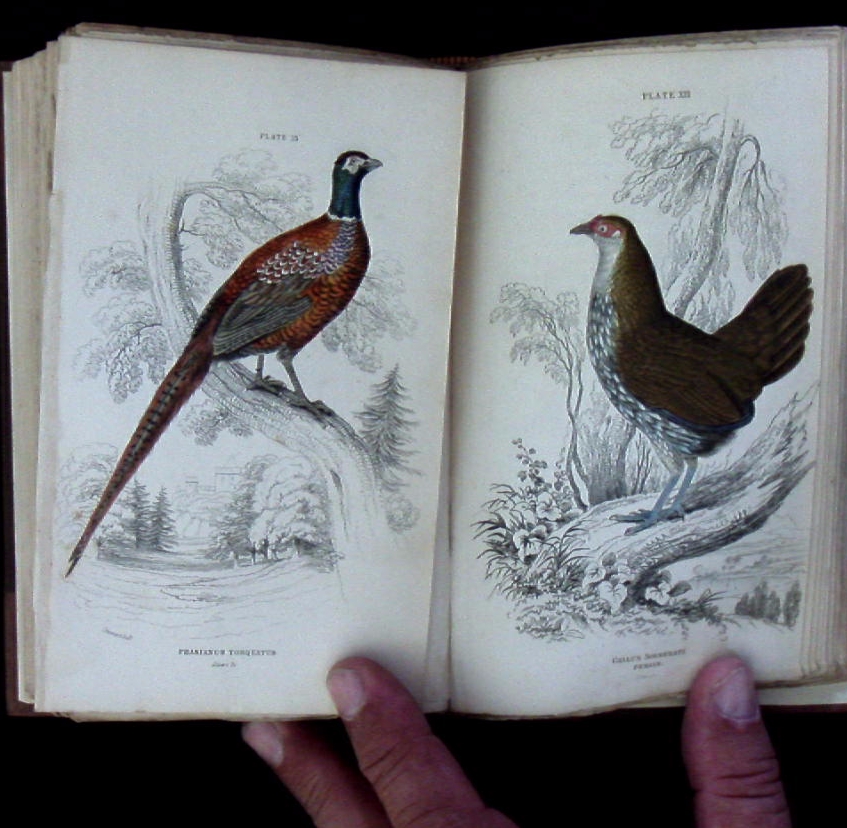 ORNITHOLOGIE.– JARDINE, William: The Natural History Of Gallinaceous Birds. Vol. I. Edinburgh (W. H. Lizars, and Stirling and Kenney), 1834. kl. 8°. Aristoteles Portrait als Frontispiz, kolorierte Titelvignette (Hahn), 232 S. mit zahlr. Textabb.+ 29 kolorierte Bildtafeln mit Vögeln von Andrew Crichton. neues HLdr mit goldgeprägtem Rücken = The Naturalist’s Library, / Vol. III. Sir William Jardine, 7. Baronet (* 23. Februar 1800 in Edinburgh, Schottland; † 21. November 1874 in Sandown, Isle of Wight) war ein schottischer Ornithologe und Herausgeber zoologischer Werke. (Wikipedia)
