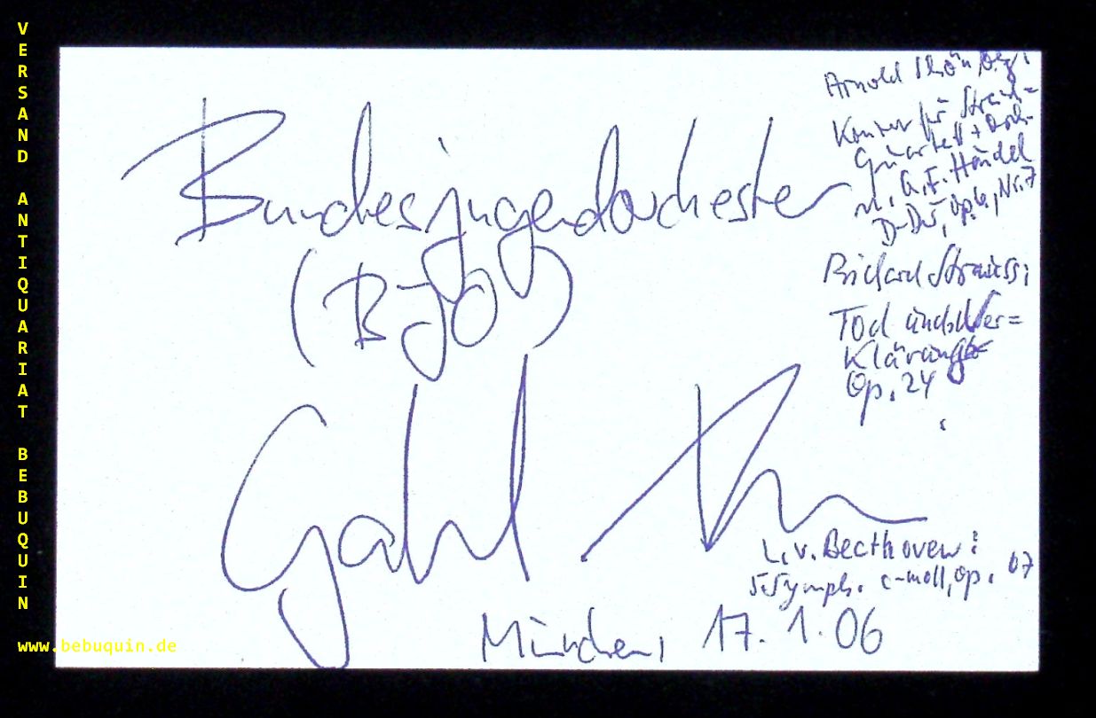 FELTZ, Gabriel (Dirigent): eigenhändig signierte und datierte Autogrammkarte. Bundesjugendorchester. München (Herkulessaal), 17.1.2006. 8 x 12,5 cm. Karteikarte.