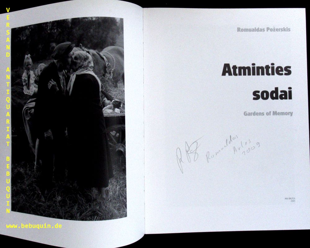 POZERSKIS, Romualdas: Atminties sodai. Gardens of memory. Kaunas (Arx Baltica), 2005. 237 (3) S. mit zahlr. Bildern und Bildtafeln. OPb mit OUmschl. tadellos. EA mit einer eigenhänidgen Widmung des Fotorafen auf Titelseite.