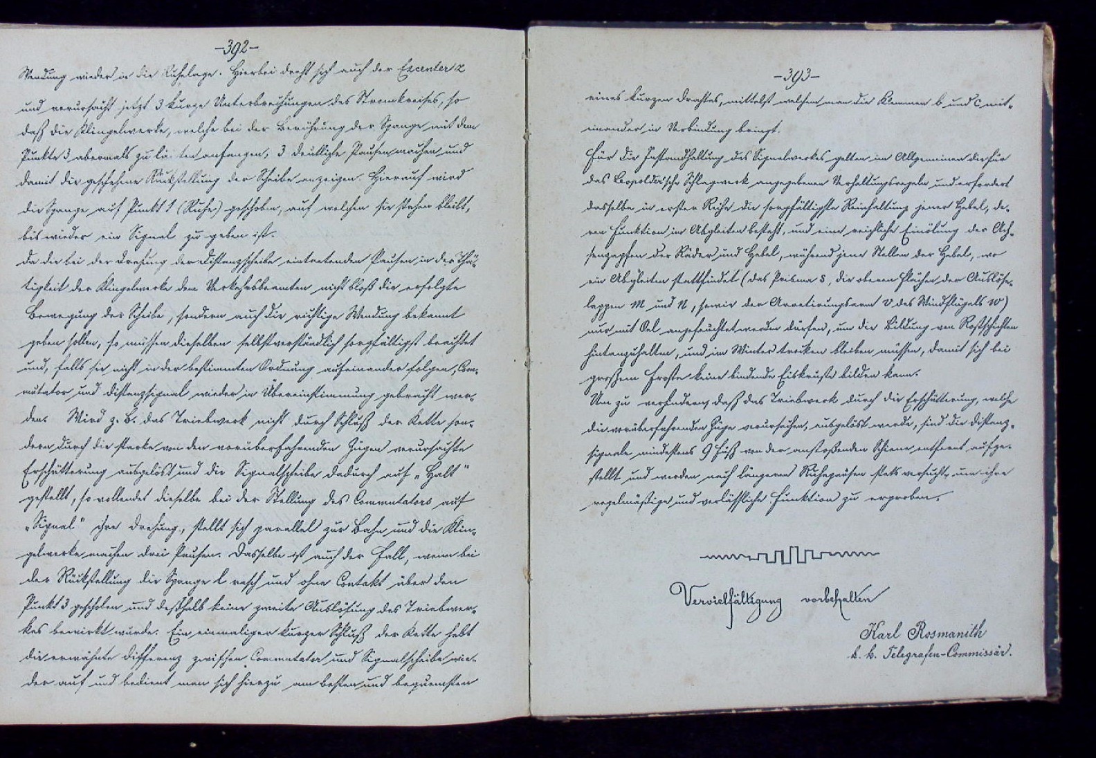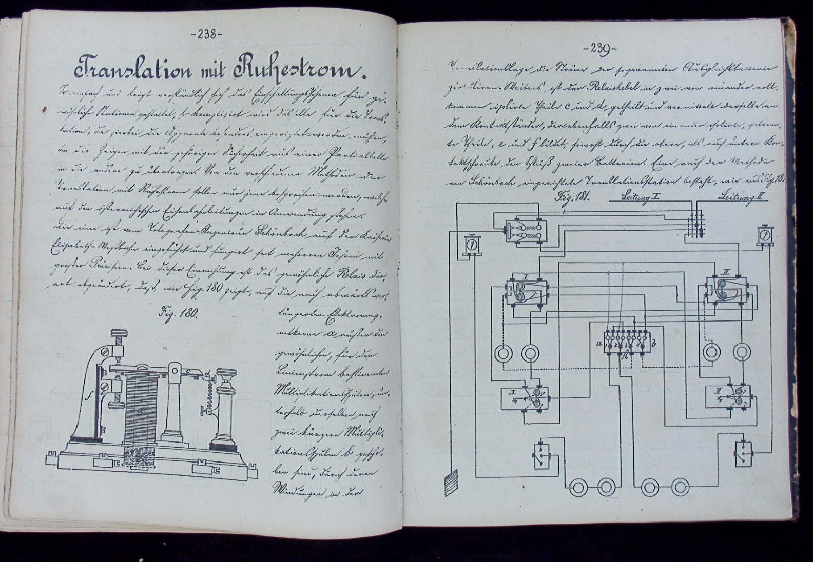 FUNK.– ROSMANITH, Karl: Vorträge über electromagnetische Telegraphie. Eigenhändig verfaßte Schrift zum Thema. (Wien), ca 1870. 4°. 393 (5) S. mit 254 Figuren. HLn der Zeit. Kanten stärker berieben, Block etwas gelockert, Papier altersbedingt gebräunt. Wohl einmalige als Druckvorlage hergestellte Schrift des Mitglieds der k.k. Telegrafen-Commission, der 1887 verstarb, mit den teils aufwendigen Zeichnungen aus der Frühzeit der Telegrafie.