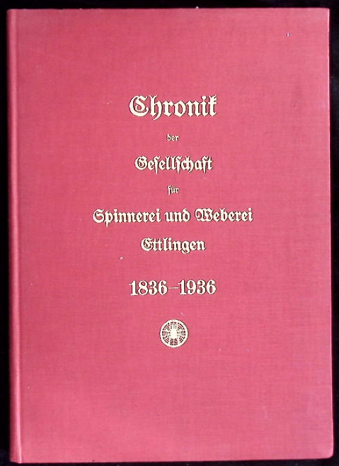 ETTLINGEN.– SCHMIEDER, Ludwig: Chronik der Gesellschaft für Spinnerei und Weberei Ettlingen. 1836-1936. Ein Beitrag zur Wirtschaftsgeschichte d. Albtales u. zur Geschichte d. badischen Textilindustrie. Karlsruhe (Braun), 1936. 4°. 178 S. mit Abb., Plänen u. Kurven. OLn mit Goldprägung. tadellos. EA.
