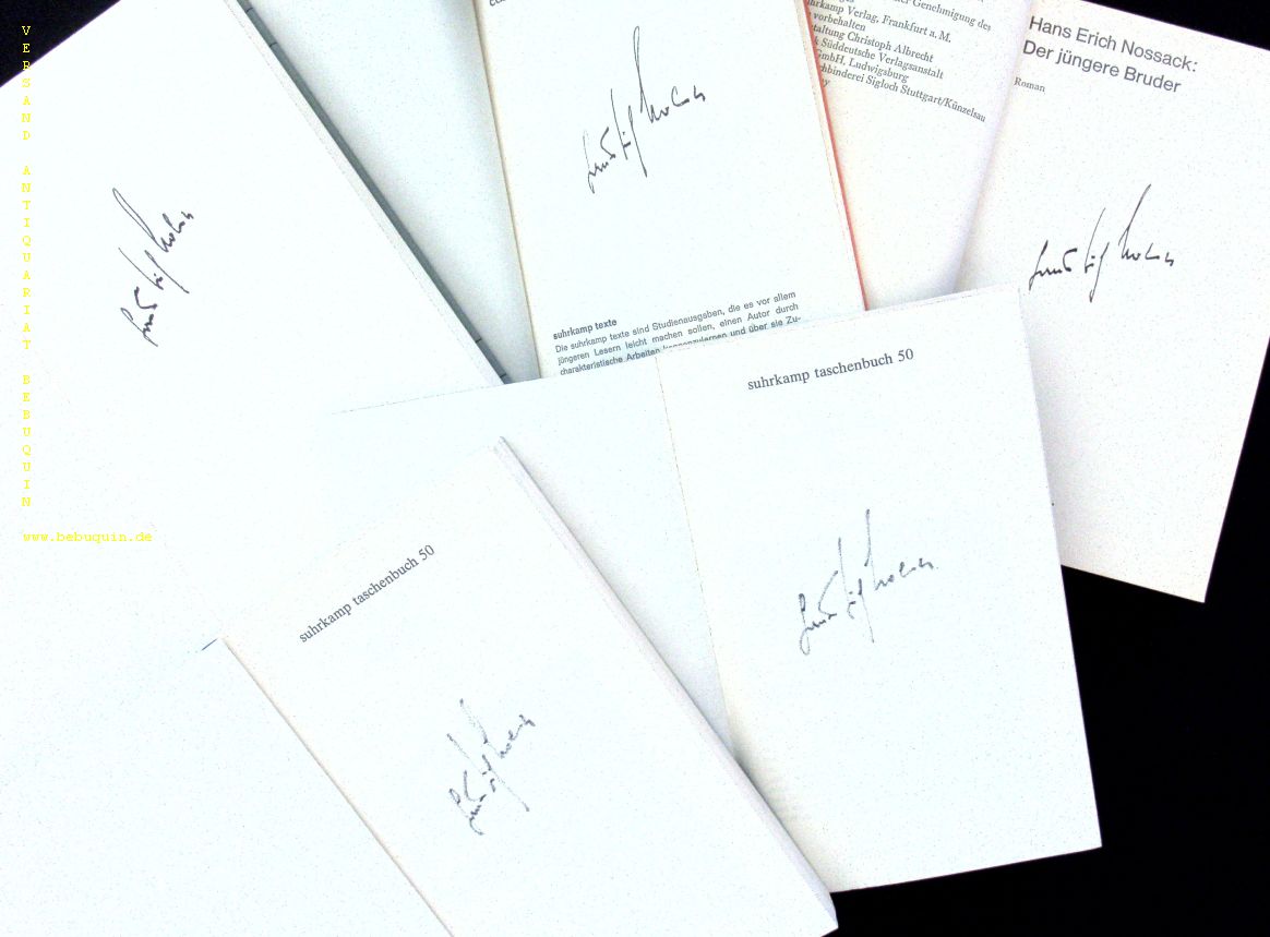 NOSSACK, Hans Erich: : Nach dem letzten Aufstand. Ein Bericht. Frankfurt (Suhrkamp), 1961. 366 (2) S. OLn mit OUnschl. tadellos. EA WG² 21 mit der Signatur des Dichters auf Vorsatz. Beigegeben: 4 ebenfalls von Nossack eigenhändig signierte Werke. zusammen 5 Bände für