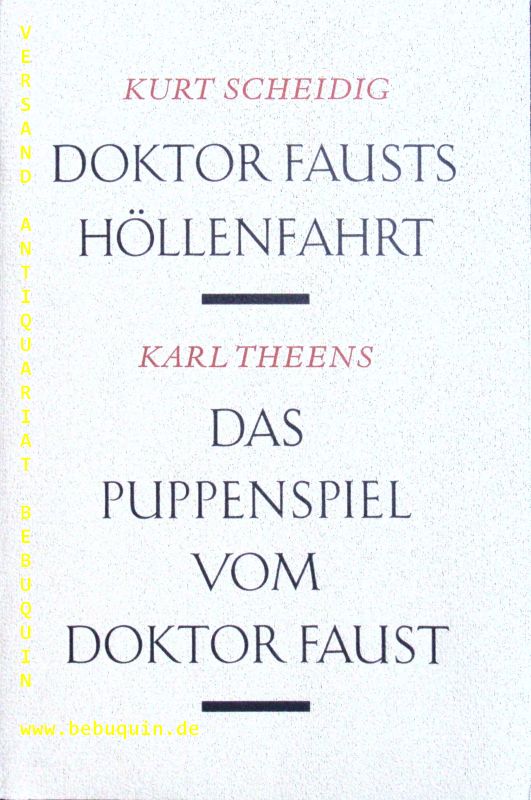 SCHEIDIG, Kurt: Doktor Fausts Höllenfahrt. + Karl Theens: das Puppenspiel vom Doktor Faust. Stuttgart (Theens), 1971. Gr. 8°. 107 S. mit zahlr. Abb. OKart. neuwertig. = Jahresgabe der Faust-Gesellschaft, 1971. EA.
