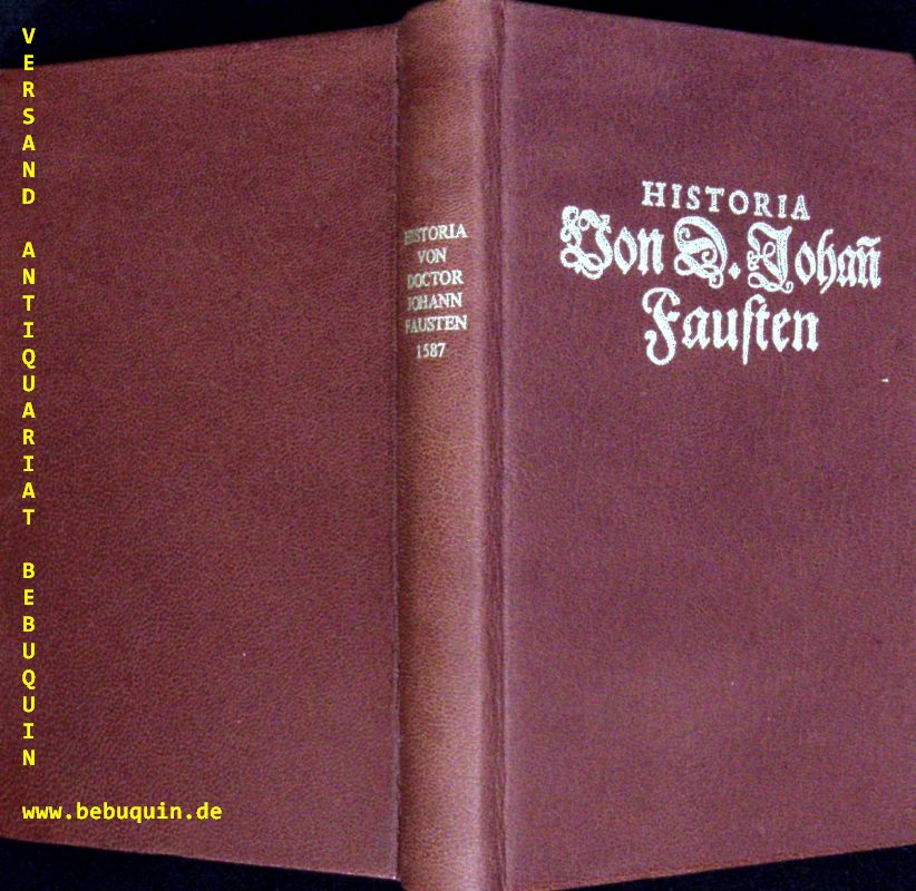 FAUST [Volksbuch von 1587].– Historia von D. Johann Fausten. Mit einem Nachwort von Peter Boerner. Nachdruck der Ausgabe Frankfurt 1587. Wiesbaden (Sändig), 1978. kl. 8°. 227, XXX S. u. ungez. Bl. mit Buchschmuck, braunes Oldr mit Goldprägung. wie neu. hübsches Präsent.