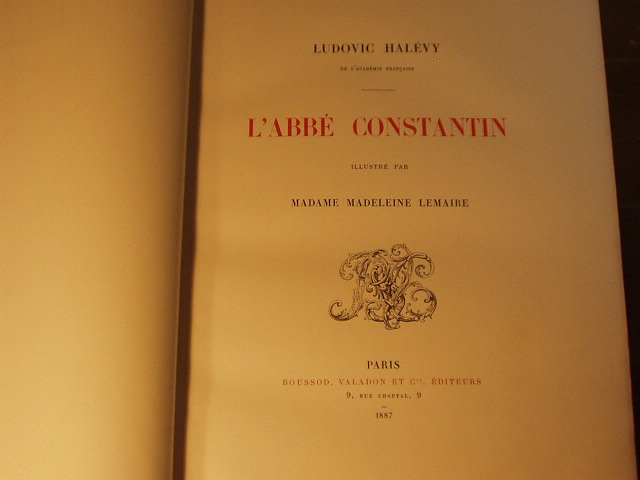 LEMAIRE.– HALEVY, Ludovic: L’abbé Constantin. Paris (Bussod, Valadon), 1887 Gr. 4°. 1 Bl., 136 S. Mit 9 Tafeln u. einigen Textillustr. in Photogravure u. Heliogravure nach Madeleine Lemaire. brauner HLdr. der Zeit auf 6 Bünden mit goldgeprägtem Rücken. schönes Ex. mit allen Schutzblättern.