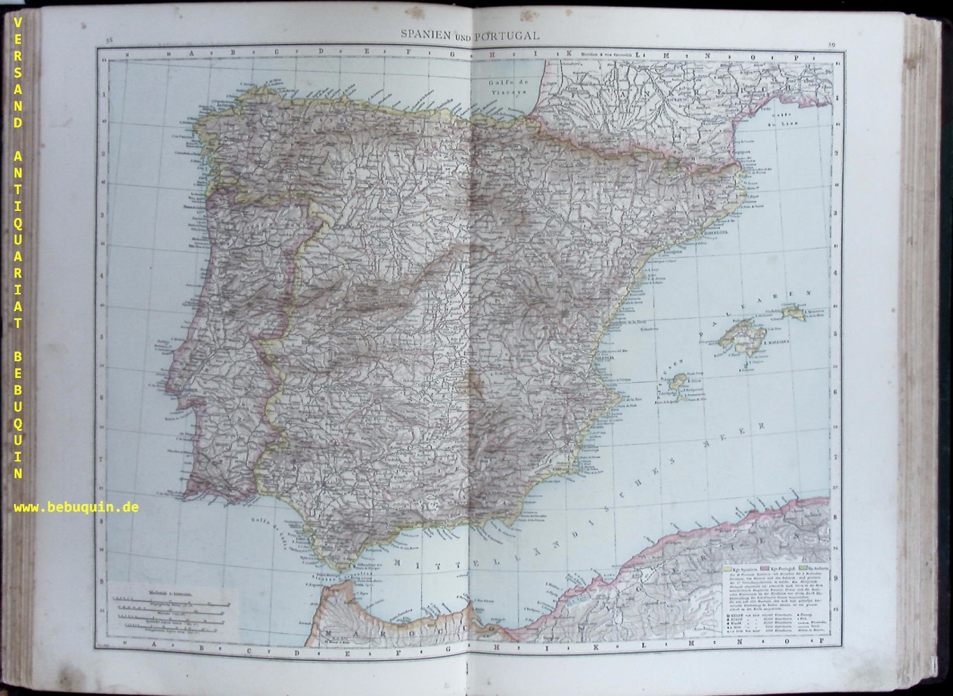 ATLANTEN.– ANDREES, Richard: Allgemeiner Handatlas. In hundertzwanzig Kartenseiten und zwei Ergänzungskarten. 2. wesentlich verbesserte und um ein Viertel des Umfanges vermehrte Aufl. Bielefeld (Velhagen & Klasing), 1887. 120 (2), 112 S. OHLdr mit goldgepräghtem Rücken. fein restauriertes Ex. mit stabilisierten Ecken, Ex libris auf Innendeckel und Titelseite, vereinzelt etwas fingersfleckig. seltenes frühes Ex.
