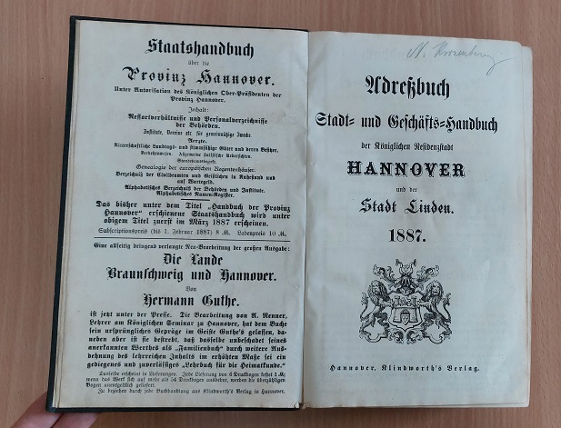 ADRESSBUCH 1887 DER KÖNIGLICHEN RESIDENZSTADT HANNOVER.–