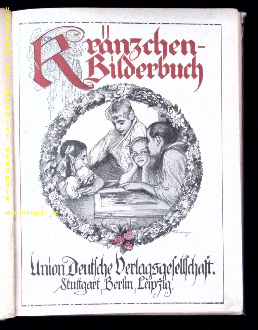 KRÄNZCHEN-BILDERBUCH.– Stuttgart (Union), ca 1920. 4°. 72 S. mit zumeist farb. Illustrationen von Walter Trier: Das ABC; Arpad Schmidhammer: Der Mann mit dem Schwan u.a. farb. ill. OHLn. Einband etwas geblichen, wenig gelockert, sonst gut erhalten. Textbeiträge von August Supper, Karl Ettlinger, Charlotte Niese, Ad. Holst, Hermine Mörike, Carl Ferdinand, Victor Blüthgen u.a.