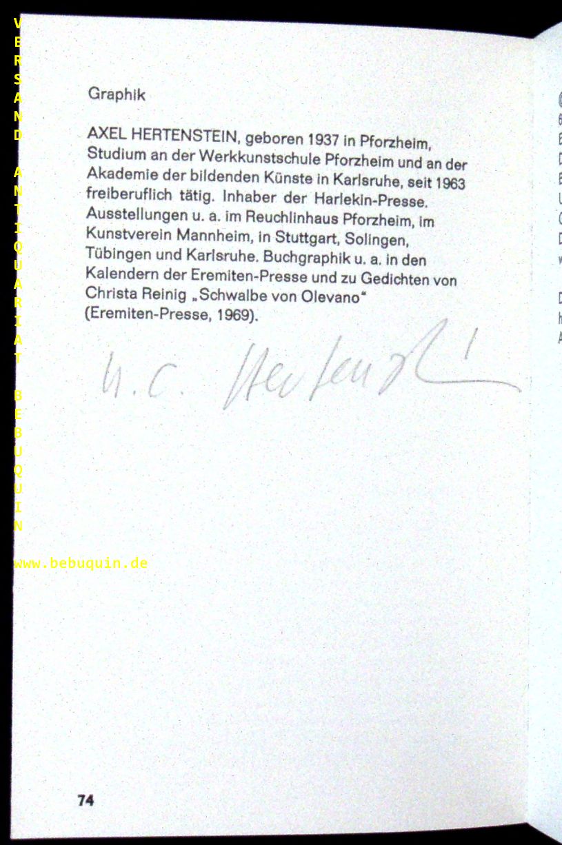 EREMITEN-PRESSE.– EGE, Friedrich: (Übersetzt), Kriegerische Sätze. Junge Dichtung aus Finnland. Stierstadt V(Eremiten-Presse), 1970. 74 S. mit zahlr. farb. Linolschnitten von Axel Hertenstein. engl. brosch. in Blockbuchform. tadellos. = Broschur, 14/15. EA außerhalb der Zählung von Hertenstein signiert.