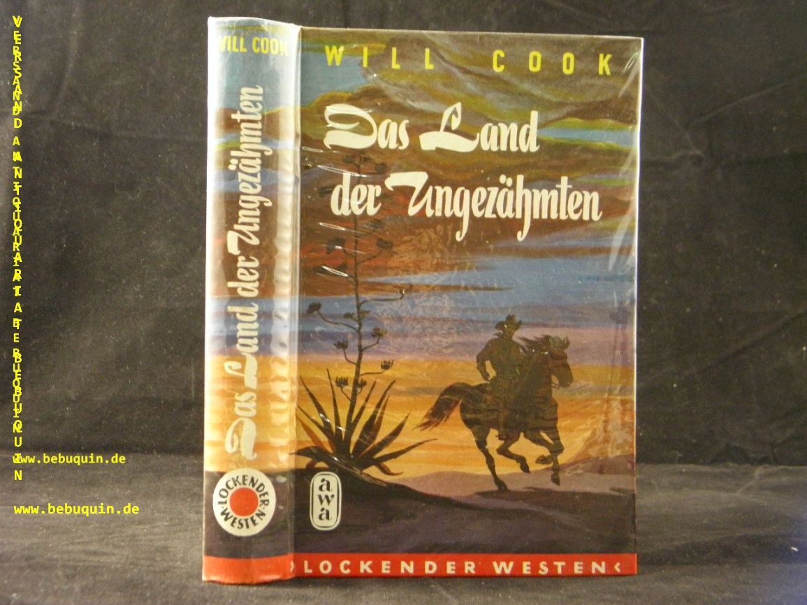 COOK, Will: Das Land der Ungezähmten. D.v. Hansheinz Werner. München (AWA), ca 1955. 246 (2) S. farb. ill. OPb. schönes Ex. = Lockender Westen. dt. EA.