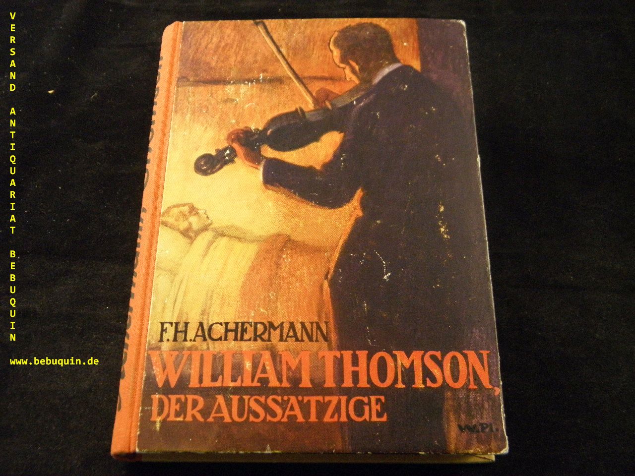 ACHERMANN, F.H.: William Thomson der Aussätzige. Ein Roman der Wirklichkeit. Olten (Walter), 1932. 198 (2) S. farb. ill. OHLn. von Willy Planck. gutes Ex. EA des Titel des als Schweizer Karl May bezeichneten Schriftstellers.