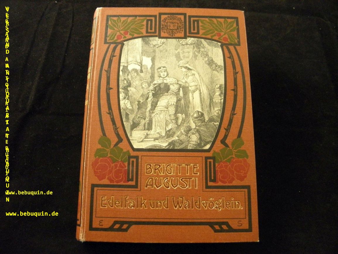 AUGUSTI, Brigitte: Edelfalk und Walsvöglein. Kulturgeschichtliche Erzählung aus dem dreizehnten Jahrhundert. 9. Aufl. Leipzig (Hirt & Sohn), (1904). Gr. 8°. 206 S. mit einem Frontispiz und 11 Holzschnitten, gestochen von Woldemar Friedrich und 8 S. Werbeanhang. ill. OLn. NaT, gutes Ex. Klotz 183/2.