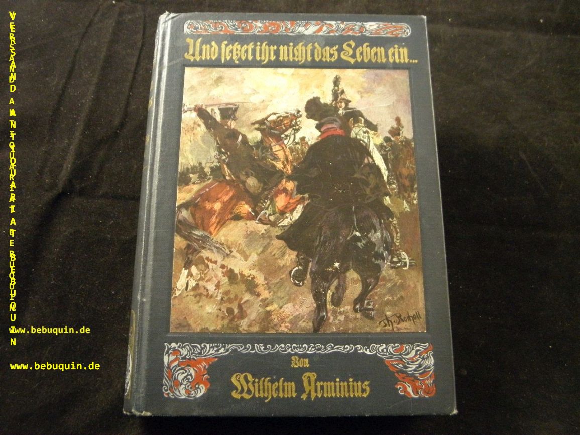 ARMINIUS, Wilhelm: Und setzet ihr nicht das Leben ein . . . Eine Geschichte aus den Befreiungskriegen. 3. Aufl. Stuttgart (Union), ca 1900. Gr. 8°. 2 Bl., 282 (4) S. mit 29 Bildern von Theodor Rocholl. OLn mit mont. Farbbild. NaV, gutes Ex. Klotz 141/3.