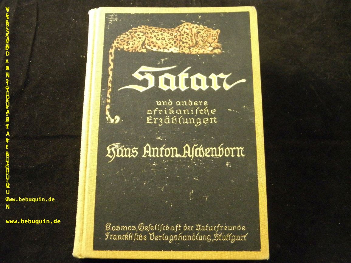 ASCHENBORN, Hans Anton: Satan und andere afrikanische Geschichten. 5. Aufl. Stutgart (Franckh), 1923. 123, 5 S. mit 16 Vollbildern und zahlr. Textabb. farb. ill. OLn. Klotz 163/11.